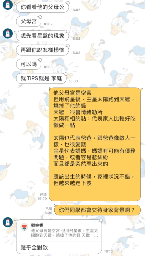 這個案例是朋友給我的案例,本來是想要看他的靈異體質的,不小心就討論到原生家庭去,上面的整理,都是在腦中解盤中的思緒跟想法,透過文章整理下來,也來分享下:當初我給出的判斷: