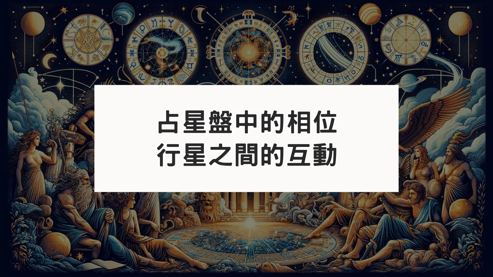 在占星學中,相位是指星盤上兩個或多個天體(如行星、太陽、月亮等)之間的角度關係。相位表明了這些天體彼此之間的能量互動和溝通方式,並對個人的性格、行為和經歷產生影響。以下是一些常見的占星相位: