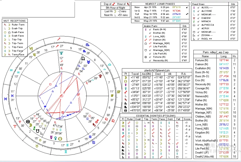 另外:星盤中代表客人的宮位七宮,主星是水星,也飛入了三宮中,並且與金星有緊密的相位關係,也反應了透過三宮(文字、文章作品、溝通)與廣大的大眾產生了交流,而讀者,也喜歡他的文章內容,並且可以從文章內容中獲得金星(文章)的幫助。