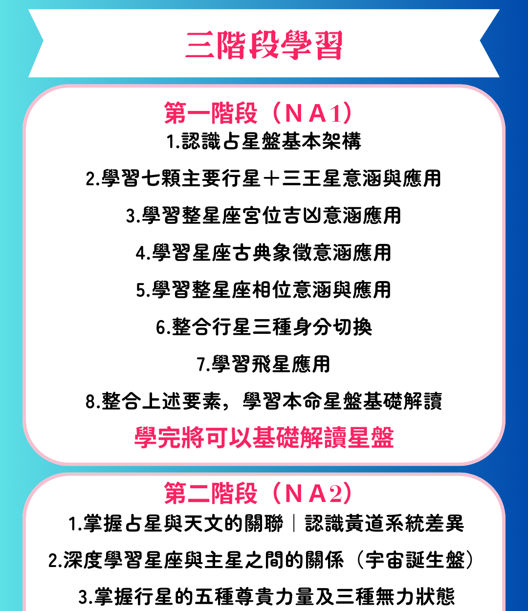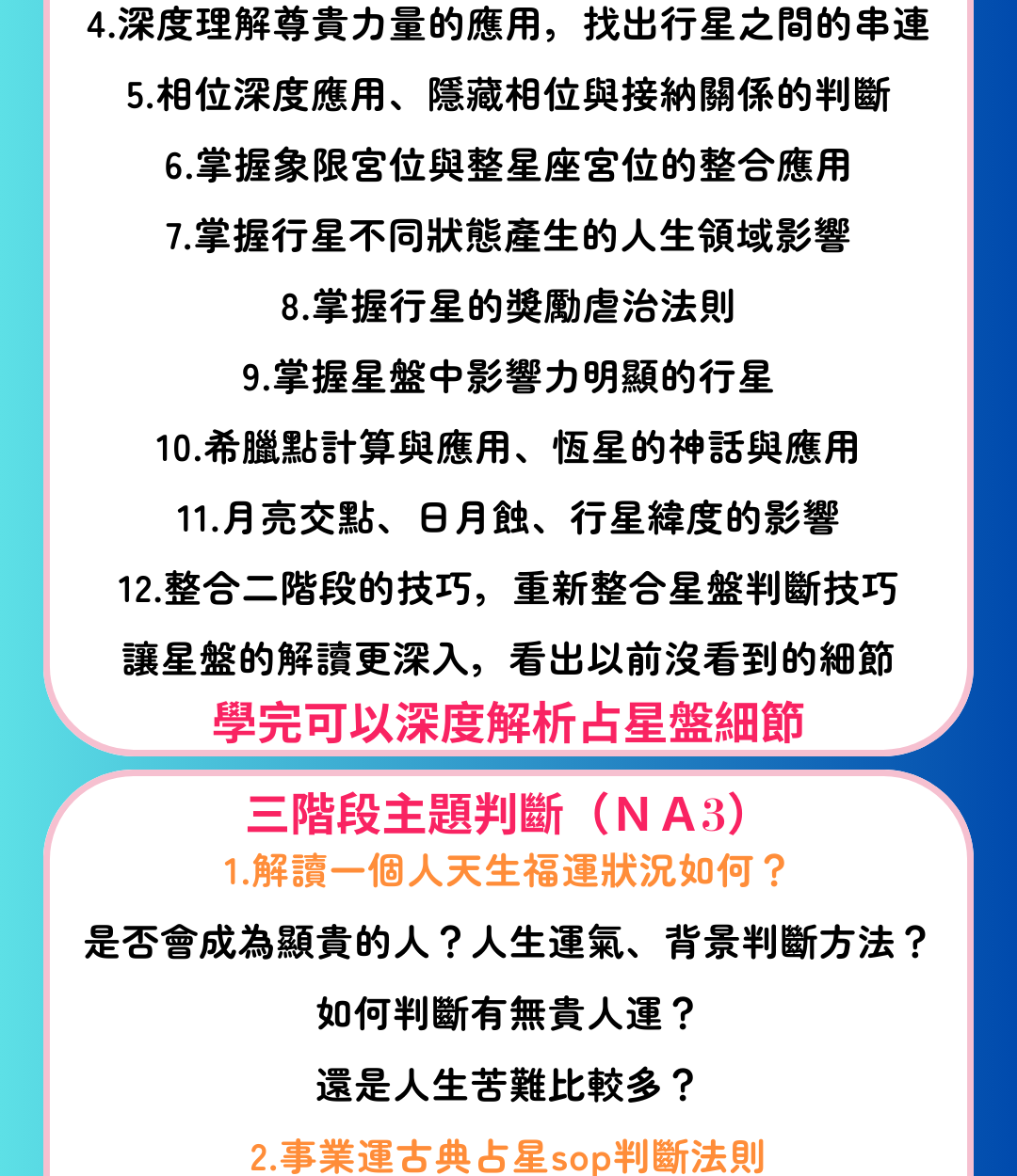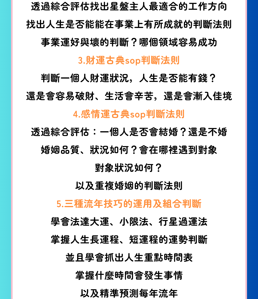 - 第三階段:學會流年預測,具備提供專業諮詢的能力