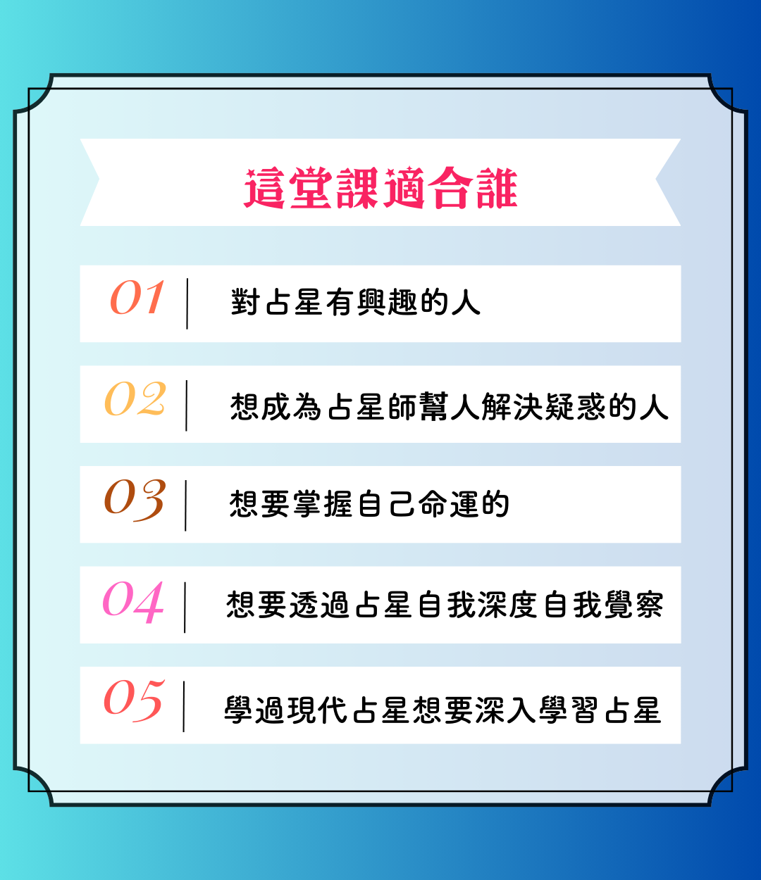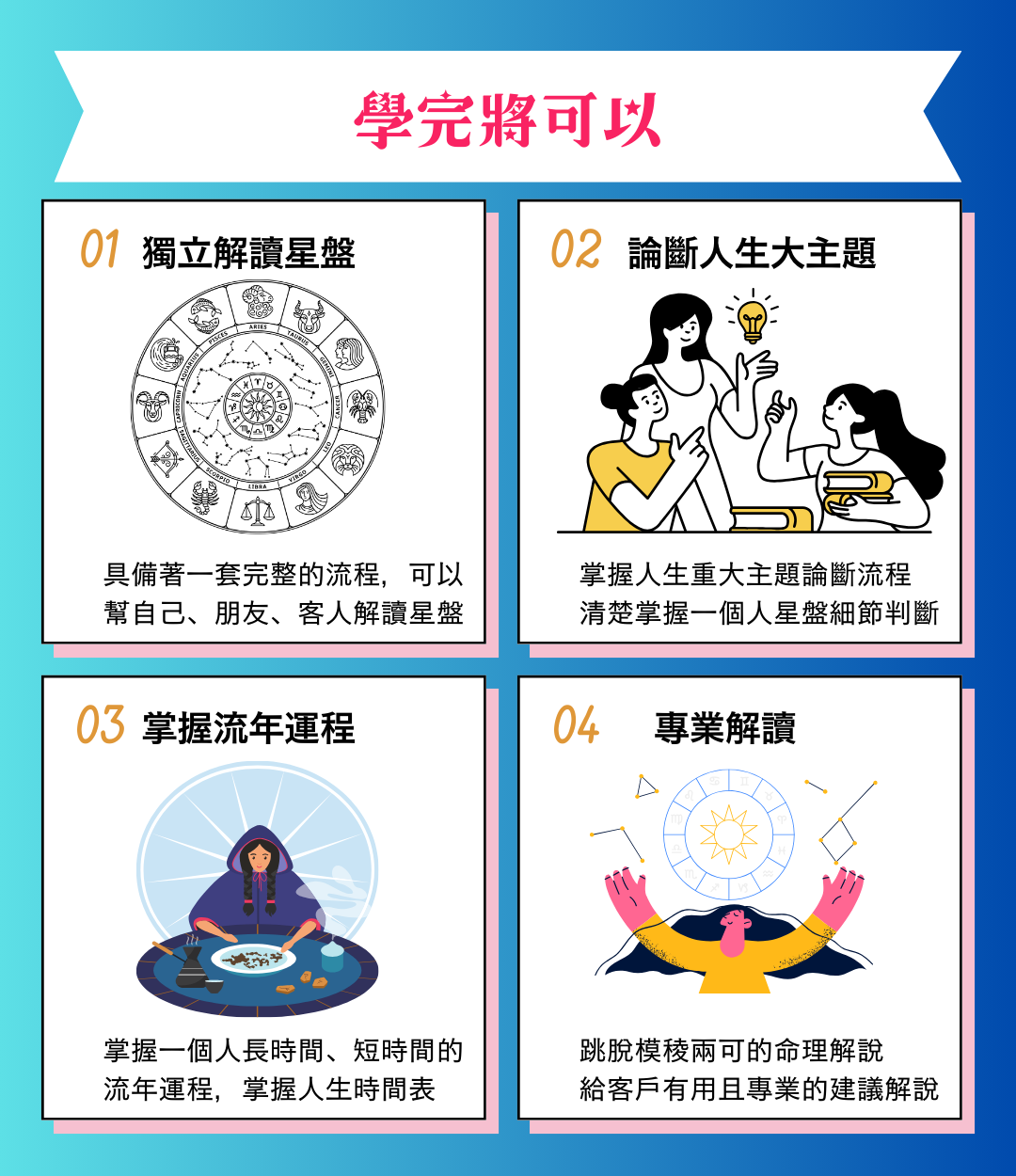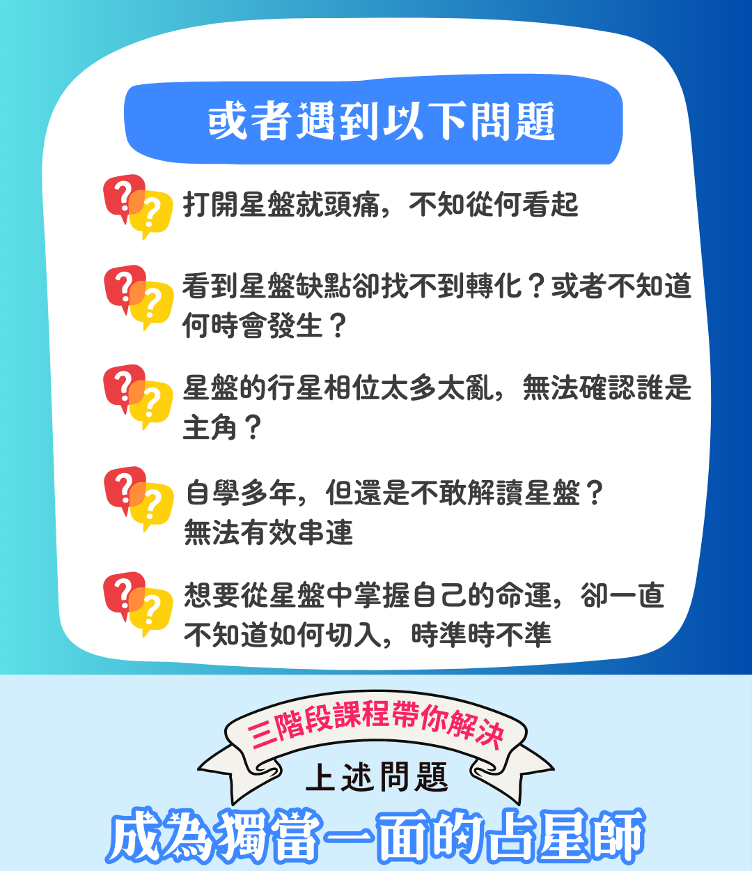 - ✅ 從星盤中精準論斷人生格局與運勢,而不是模糊的方向感