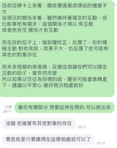 案主想問:跟對象的關係發展,想知道能否發展成情侶關係,時間設定為三個月。